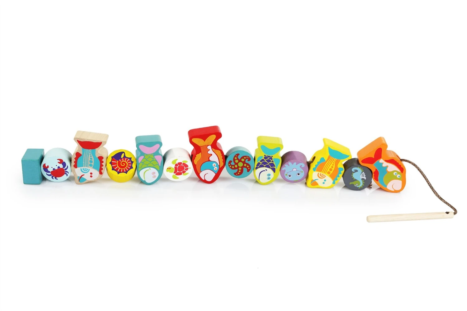 Ein farbenfrohes Verbindungsspiel mit verschiedenen farbenfrohen Tieren aus dem Meer. Lass deiner Fantasie freien Lauf und verbinde die Figuren in deiner eigenen Reihenfolge oder versuche, die Anweisungen von einer der Karten zu kopieren. Mit diesen fröhlichen Fischen und ihren Freunden kannst du auch unabhängig spielen, ohne zu verbinden. Dieses Spiel stimuliert die Entwicklung sozialer Fähigkeiten und stimuliert die Fantasie.