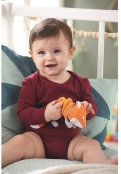 Dieser Babypapagei enthält ein schlurfendes Ei, das Geräusche macht und einen Rhythmus erzeugt, wenn Ihr Kind mit ihm spielt. An der Oberseite befindet sich ein Beißring mit einer Öffnung zum Aufhängen der Rassel am Kinderwagen oder Laufstall. Penelope, der Papagei, ist aus Stoffen mit unterschiedlichen Texturen gefertigt. Größe: 19 x 14 x 8 cm (L x B x H). Geeignet von Geburt an.