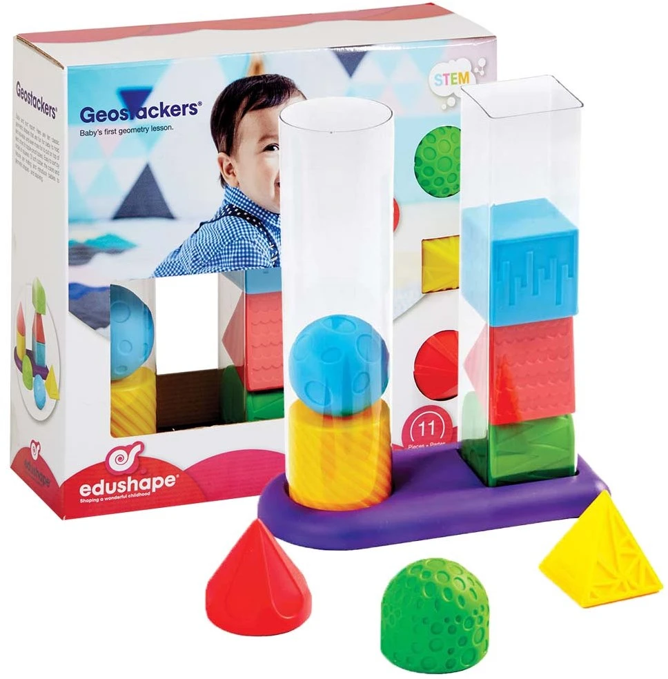 Leicht nach Kreisen oder Quadraten zu sortieren. Die aus weichem Gummi hergestellten Farben und Texturen sind ansprechend und stellen dir geometrische Formen vor – und das Stapeln.