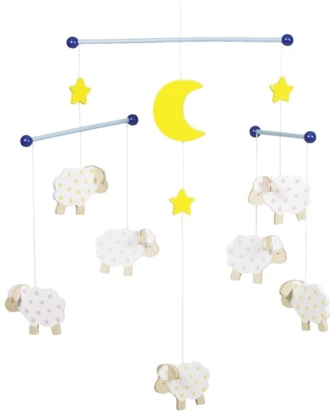 Die kleinen Schäfchen und der Mond wachen über dem Kinderbett.