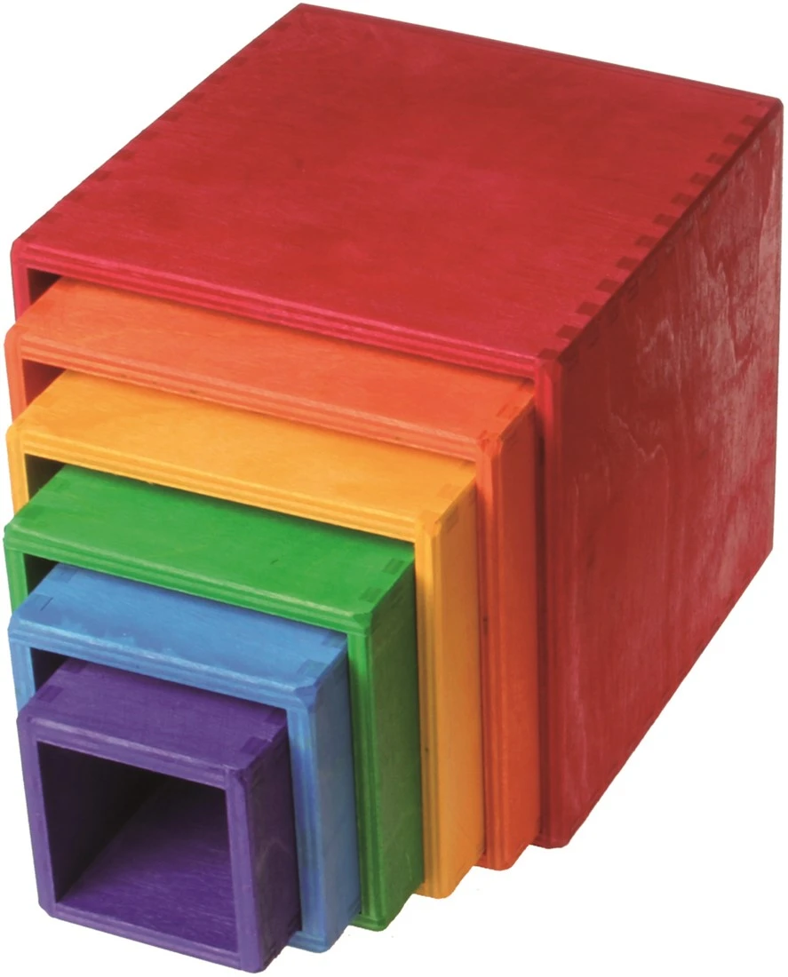 Der große Kistensatz bietet vielseitige Spielmöglichkeiten und ist praktisch: Für die ganz Kleinen schon zum stapeln, bauen, sortieren und sammeln, für Größere als Häuschen für kleine Püppchen, Garage für Autos und vieles mehr. Und natürlich sind die farbigen Boxen auch zum Aufbewahren und Ordnen auf dem Schreibtisch wunderbar geeignet.