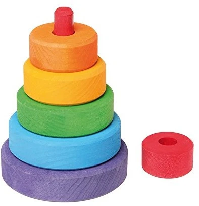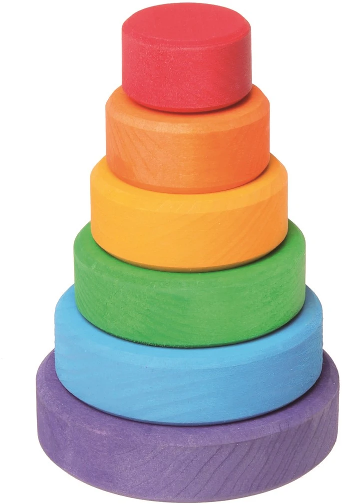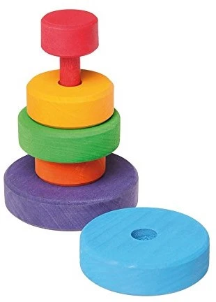 Mit dem kleinen Scheibenturm können Farben und Größen sortiert, kann gestapelt und gebaut werden. Schult die motorischen Fähigkeiten der Kleinen.