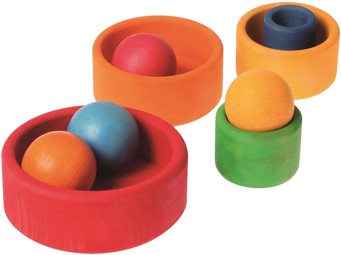 Der Schälchensatz ist ein vielseitiges Spielzeug für das Kinderzimmer: zum Stecken und Sortieren, Stapeln und Bauen, Kochen und Sammeln, als Kochtopf oder Teller… und und und.