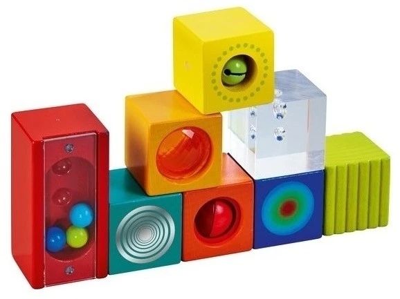 Stein für Stein entdecken kleine Stapelkünstler mit den spannenden HABA-Entdeckersteinen Farbenspaß die Welt des Bauens. Wie setzt man die farbenfrohen Steine am besten aufeinander und wie hoch kann man stapeln bevor der Turm kippt? Glöckchen, Rassel, Durchguck, Kugelspiel und andere Effekte machen das Bauen besonders interessant. Beim genauen Schauen, Hören und Fühlen entdecken die Kinder die Bausteine mit allen Sinnen und lernen spielerisch einfachste physikalische Zusammenhänge kennen. Außerdem ist es ein prima Training für die Auge-Hand-Koordination und für die Feinmotorik. Die 8 HABA-Entdeckersteine sind ideal für kleine Baumeister ab 12 Monaten und ein Geschenk, das garantiert für Freude sorgt!