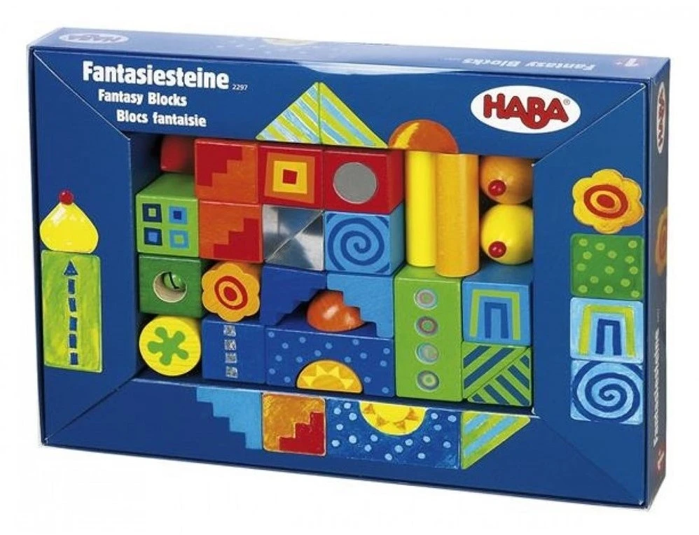 Die HABA-Fantasiesteine faszinieren Kinder mit ihren optischen, akustischen und haptischen Effekten. Ob Spiegel- oder Glitzereffekt, Glöckchen oder spannende Formen – hier sind alle Sinne gefragt! Als Bausteine verwandeln sie mit ihren leuchtenden Farben und Mustern erste Bauwerke in kleine Kunstwerke. Ein kunterbuntes Hochhaus, eine kleine Stadt aus farbigen Häusern oder ein großes Schloss mit vielen Türmen – mit diesen Steinen sind der Fantasie und Kreativität von kleinen Baumeistern ab 1,5 Jahren keine Grenzen gesetzt. Beim Bauen werden das genaue Schauen, die Auge-Hand-Koordination und die Feinmotorik spielerisch trainiert. In Kombination mit anderen HABA-Bausteinen können ganze Spiel-Welten mit diesen 26 bunten Fantasiesteinen entstehen.