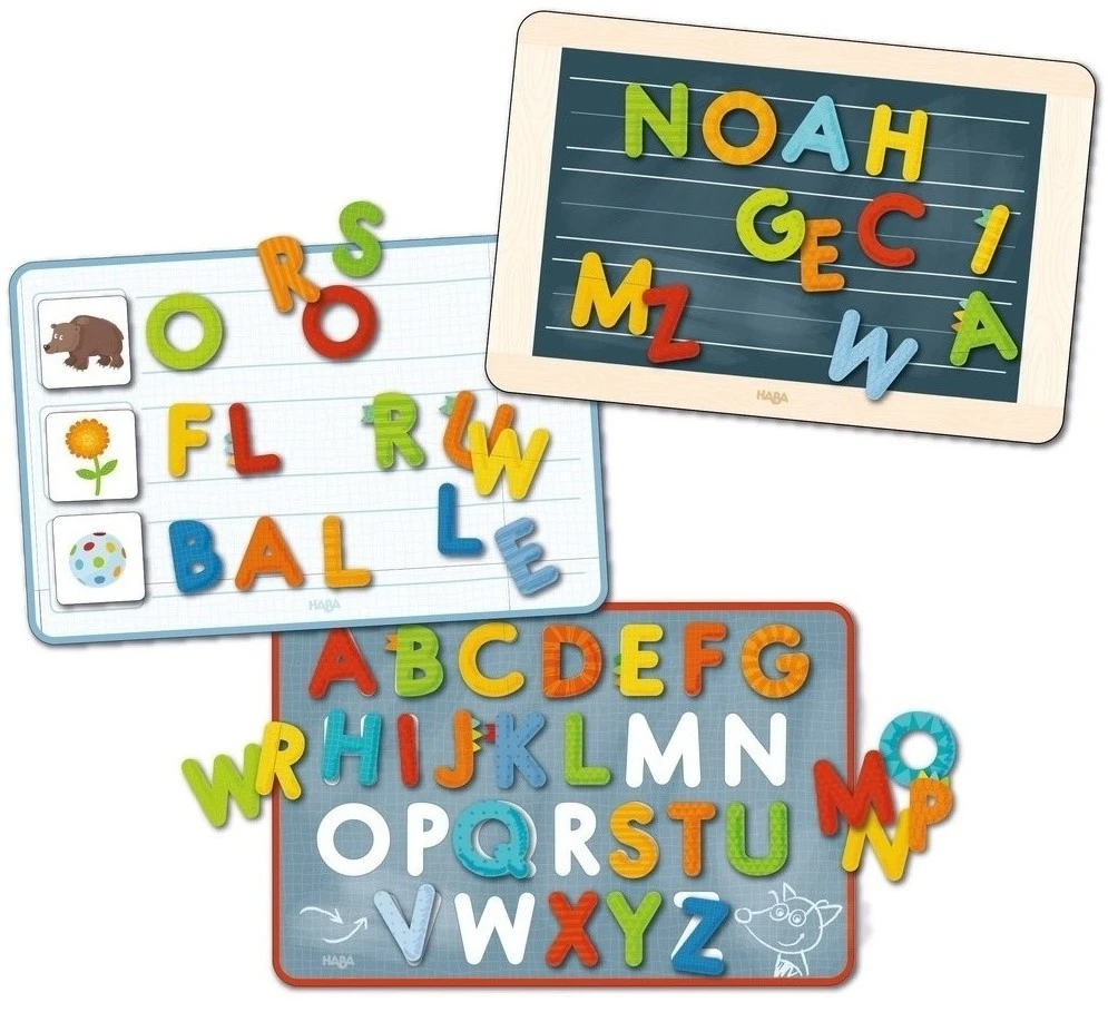 Willkommen im Land der Buchstaben! Dieses fröhlich-bunte Buchstaben-Legespiel mit vielen Motiven lädt Kinder zum spielerischen Kennenlernen des Alphabets und Schreiben erster Wörter ein.