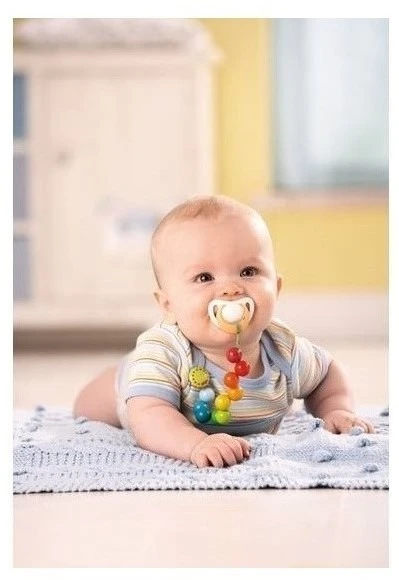 - die Schnullerkette Regenbogen-Perlen hält den Schnuller der Kleinen immer in der Nähe bereit