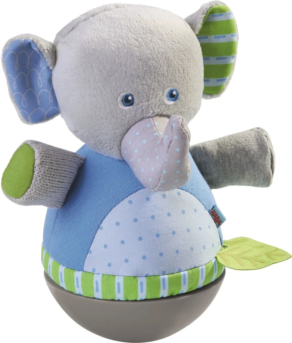 HABA Stehauffigur Elefant. Dieser süße Elefant bringt Babys riesigen Spaß! Einmal angestupst, bewegt er sich schnell hin und her. Die Kinder haben lange Freude an den lustigen Bewegungen und lauschen fasziniert dem niedlichen Klingeln.