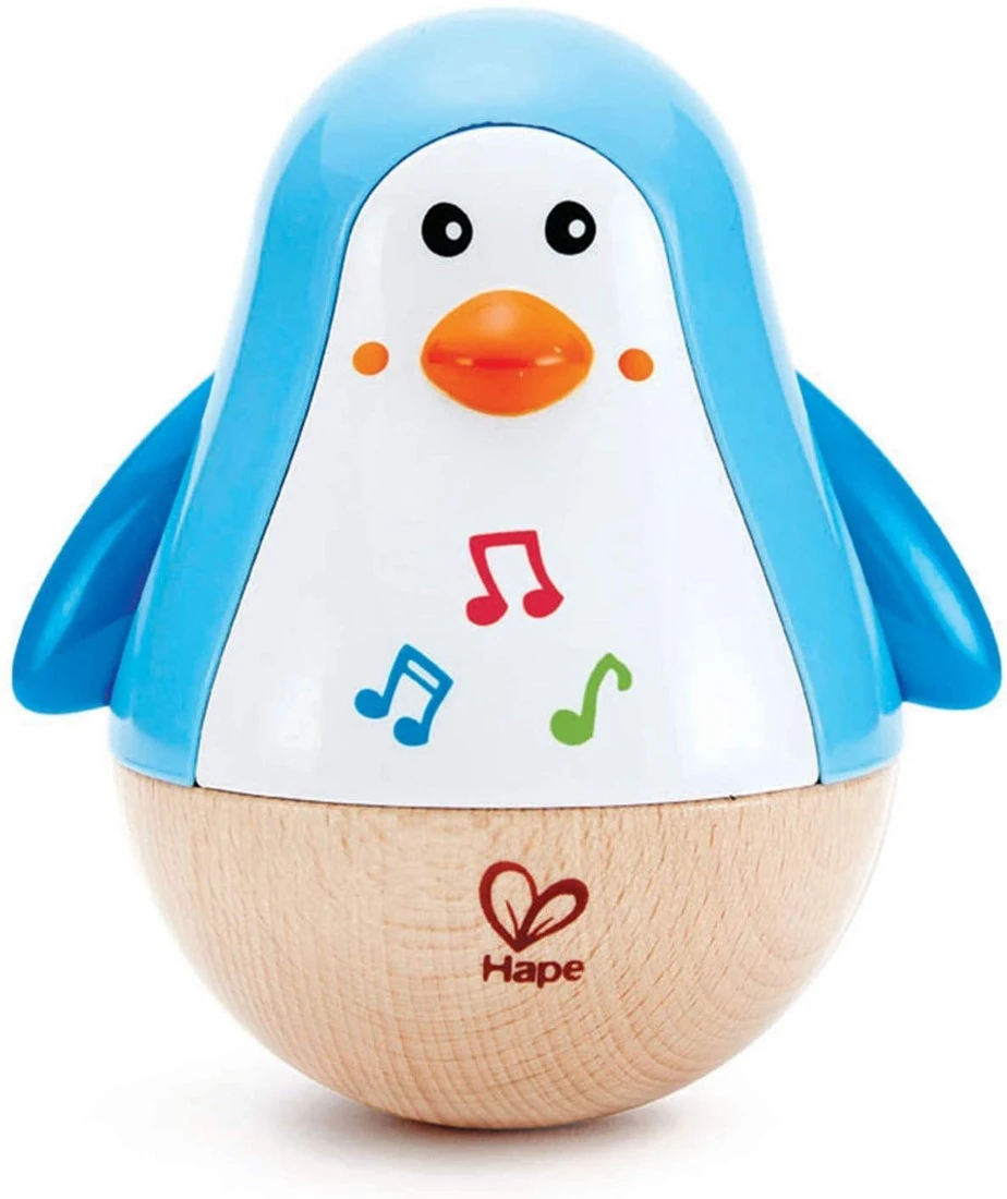 Hape Stehauf-Pinguin | Farbiger Stehauf-Pinguin mit Melodie, Stehauf-Spielzeug für Kinder im Alter von 6 Monaten und älter