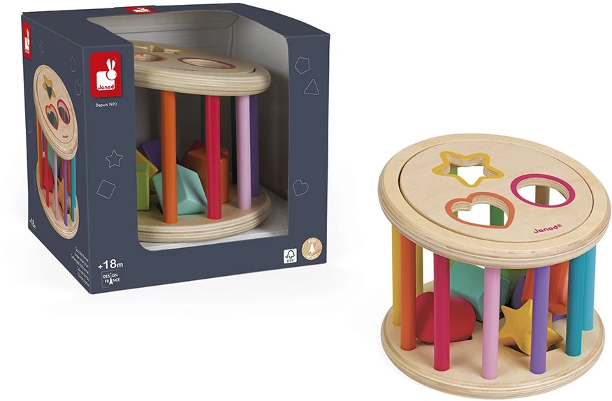 Holzspielzeug. FSC-zertifiziert. Für Kinder von 18 bis 36 Monaten. Zubehör in Wasserfarben. Die Steckbox mit 6 Würfeln zum Einfügen unterstützt Ihr Baby, die Formen und Farben zu lernen und seine Hand-Augen-Koordination zu entwickeln. Der magnetische Deckel lässt sich einfach abnehmen und die Teile sind problemlos herauszunehmen. Praktisch im Spiel mit einer hohen Spielfreude für Ihr Kind.
