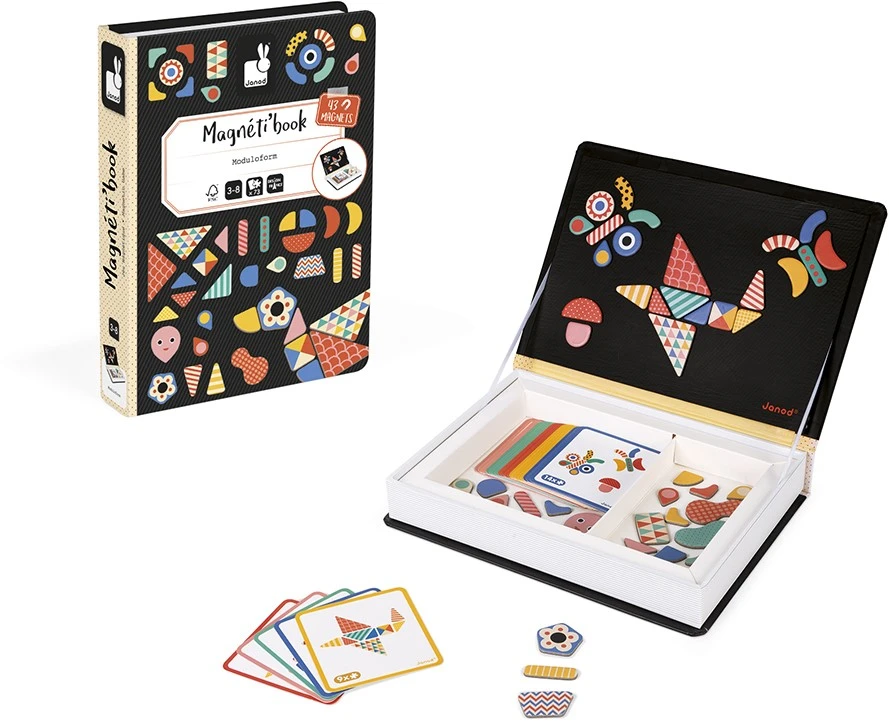 Janod J02720 Magnéti’book, 43 Magnets Magneti’Book Moduloform Formen Und Muster, Schwarz