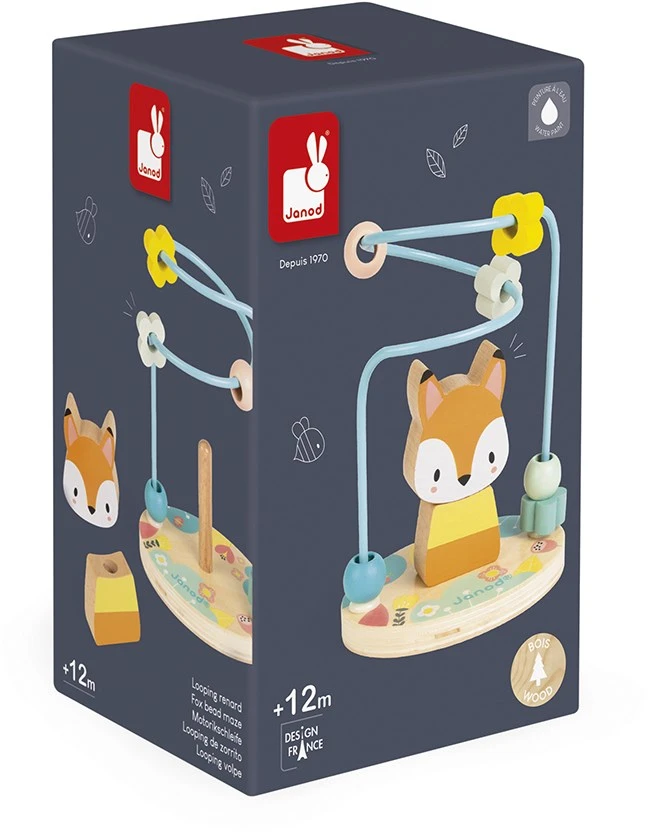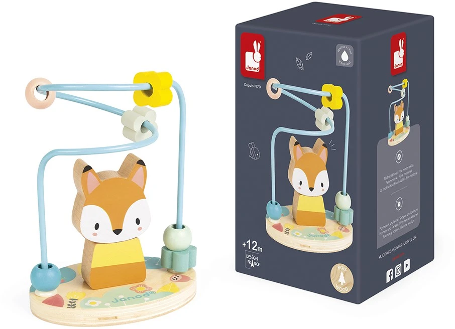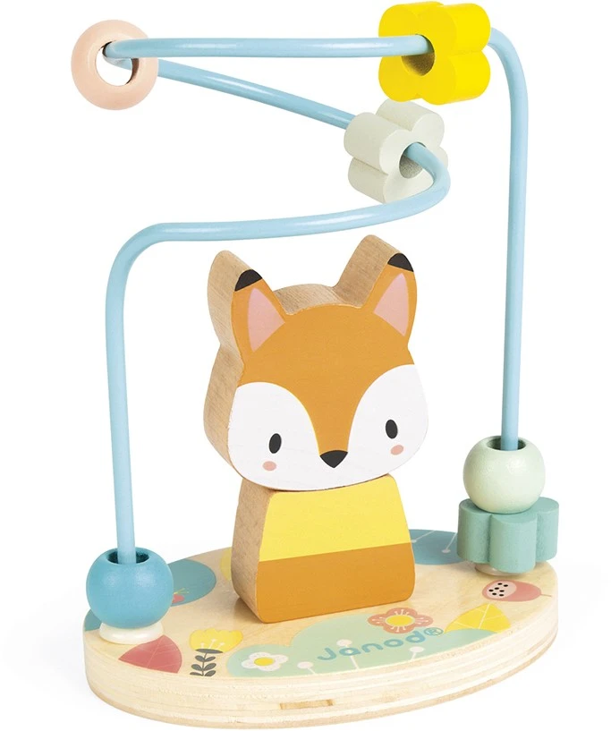 Kleiner Fuchs zum Zusammensetzen auf einem hübschen Sockel in angenehmen zeitgemäßen Farben umgeben von einer Schleife zur Förderung der Konzentration und der Motorik.