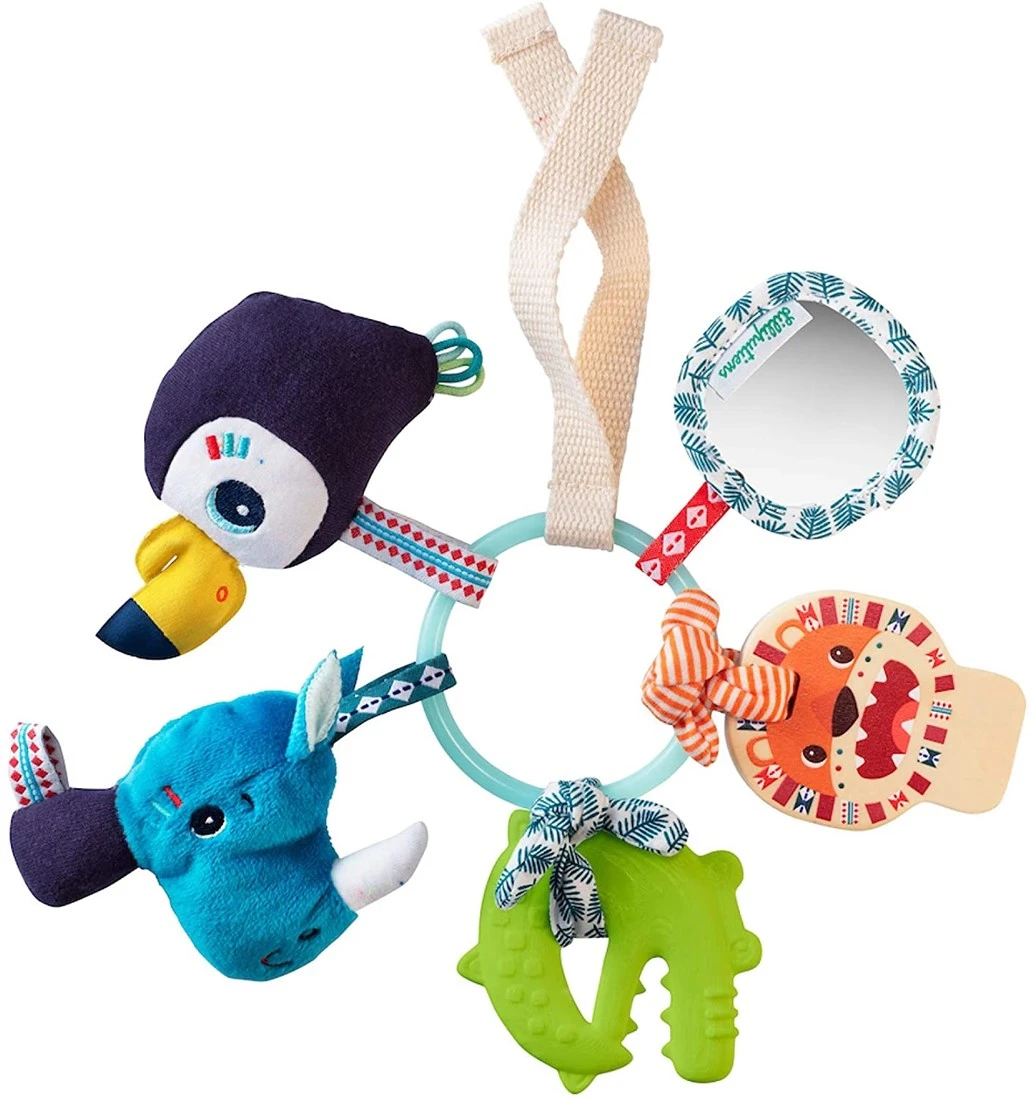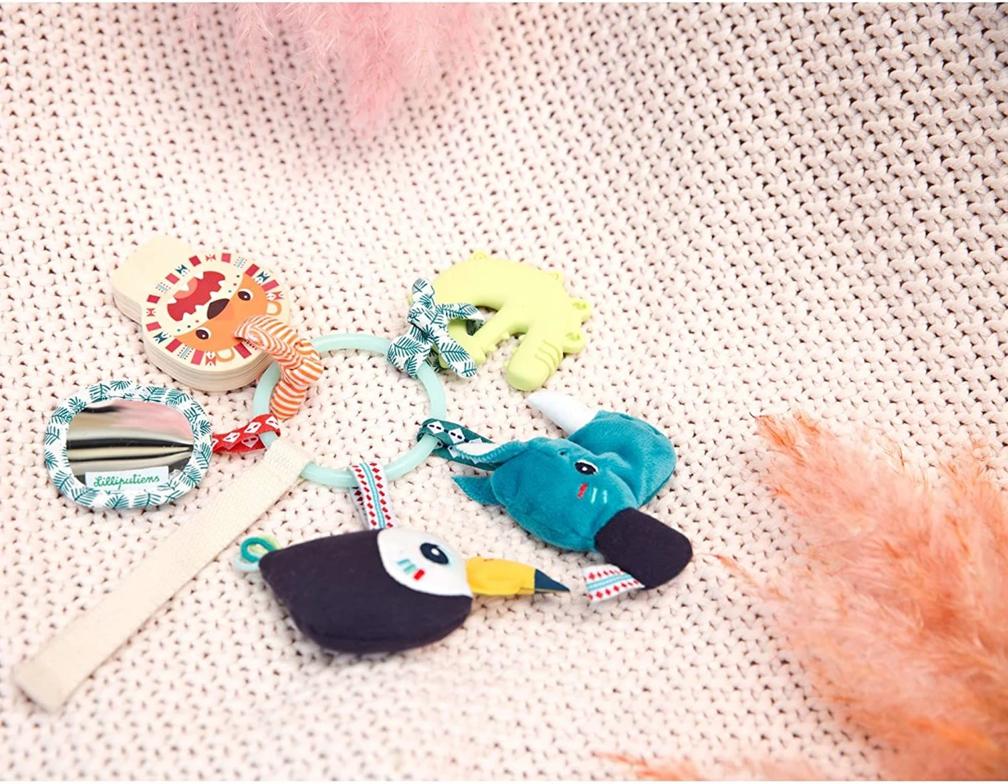 Eine Vielzahl von Materialien, Farben und Klängen – dieser Schlüsselanhänger bringt kleine Entdecker zum Staunen!