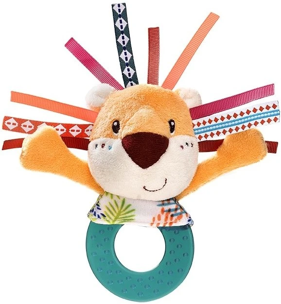 Diese weiche, besänftigende Beißrassel mit Jack, dem Löwen, sorgt für zusätzliche Sinnesreize durch beruhigende Glöckchen- und Raschelgeräusche in der Rassel.