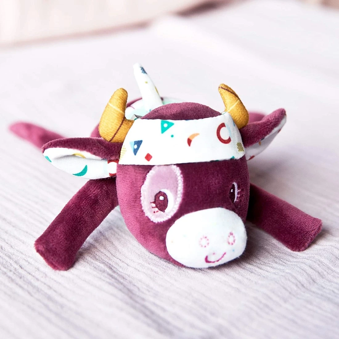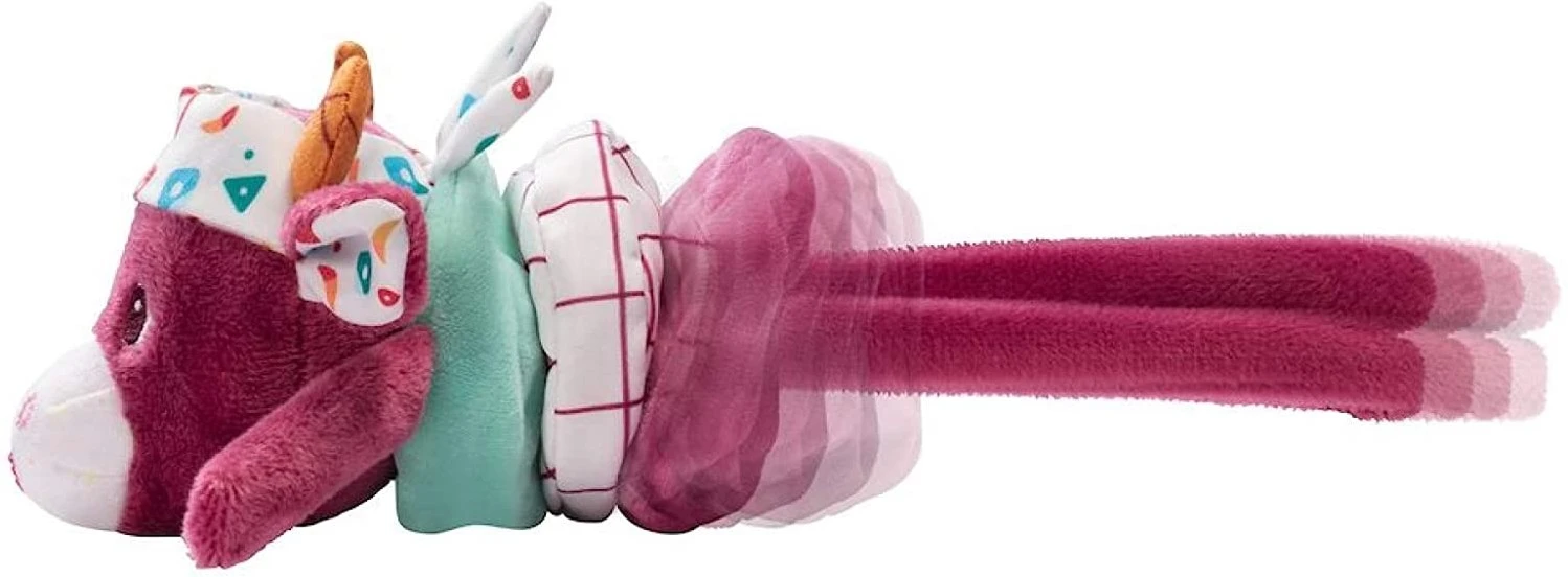 Zieht man an den Beinen, beginnt diese Rassel fröhlich zu tanzen. Was für ein lustiges, überraschendes Gefühl für kleine Hände!