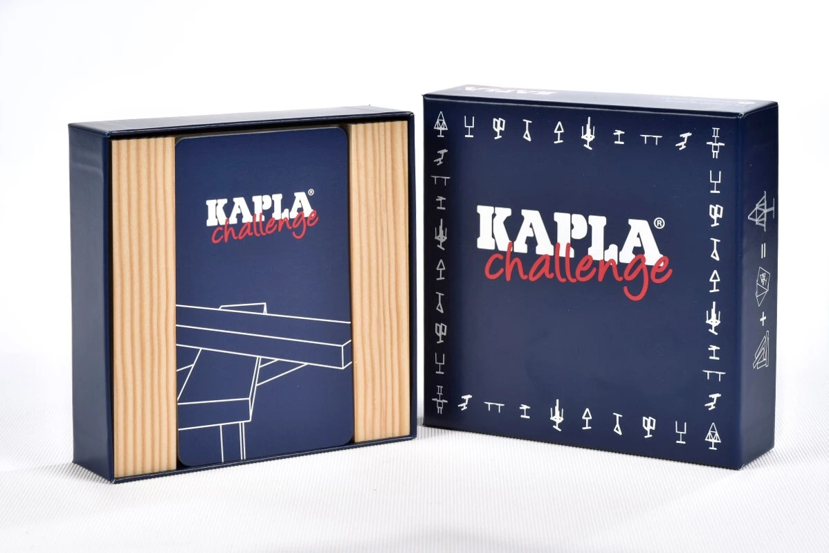 Kapla 8027 Holzplättchen Challenge 16-Teilig mit 12 Spielkarten, französische Ausgabe