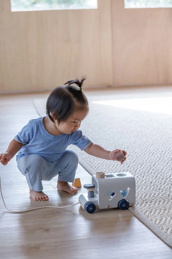 Dieser Sortierbus enthält 3 bunte Formen. Ziehe an der Lasche oben auf dem Bus und alle Teile gleiten heraus. Empfohlenes Alter: Ab 12 Monaten.