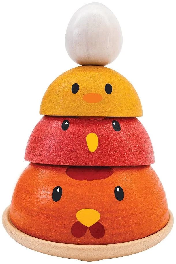 Dieses einfache Nistspielzeug hat ein Hühnermotiv. Es besteht aus 4 Teilen und einer kreisförmigen Basis. Die Kinder können die Abfolge und den Lebenszyklus eines Huhns kennenlernen und auf verschiedene Arten spielen. Empfohlenes Alter: Ab 12 Monaten.
