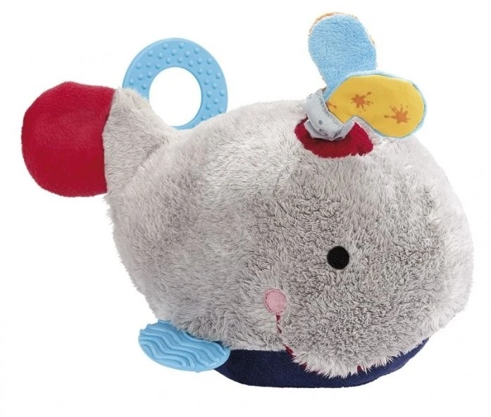 Dieser kleine Meeresbewohner animiert zum Greifen, Erforschen und Fühlen. Berührt man ihn an seinen Flossen, hört man spannende Geräusche, die Vibrationsrassel am Kopf weckt die Neugier an Bewegung und die Beißringe helfen Babys beim Durchbruch der ersten Zähnchen.