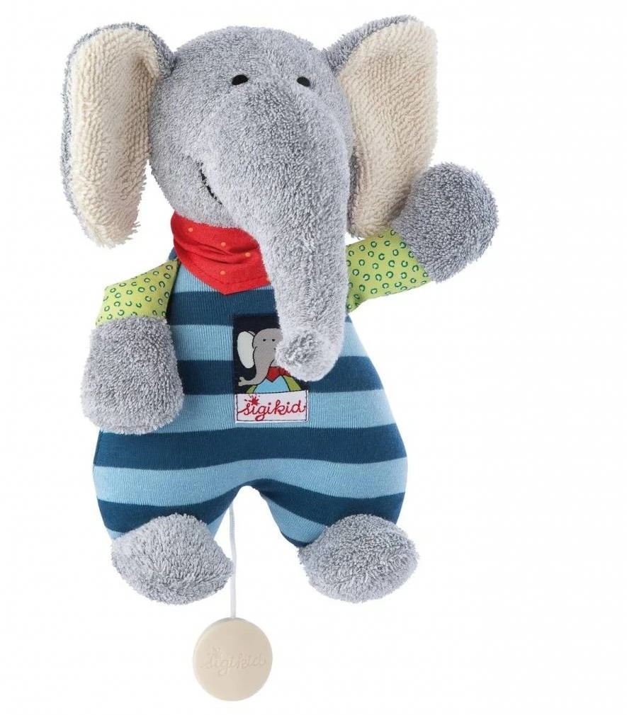 Träum süß, mein kleiner Schatz! Der knuffige Schmuse- und Spielelefant mit Musikspieluhr wiegt dich sanft in den Schlaf und sorgt am Morgen für ein freudiges Wiedersehen mit einem vertrauten Bekannten. Melodie sortiert.