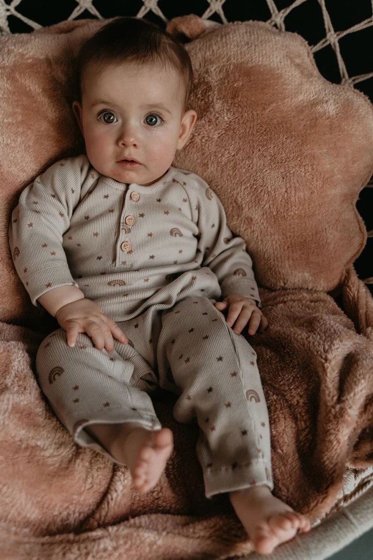 Snoozebaby Bio-Babyanzug Milky Rust Regenbogen – Größe 50-56