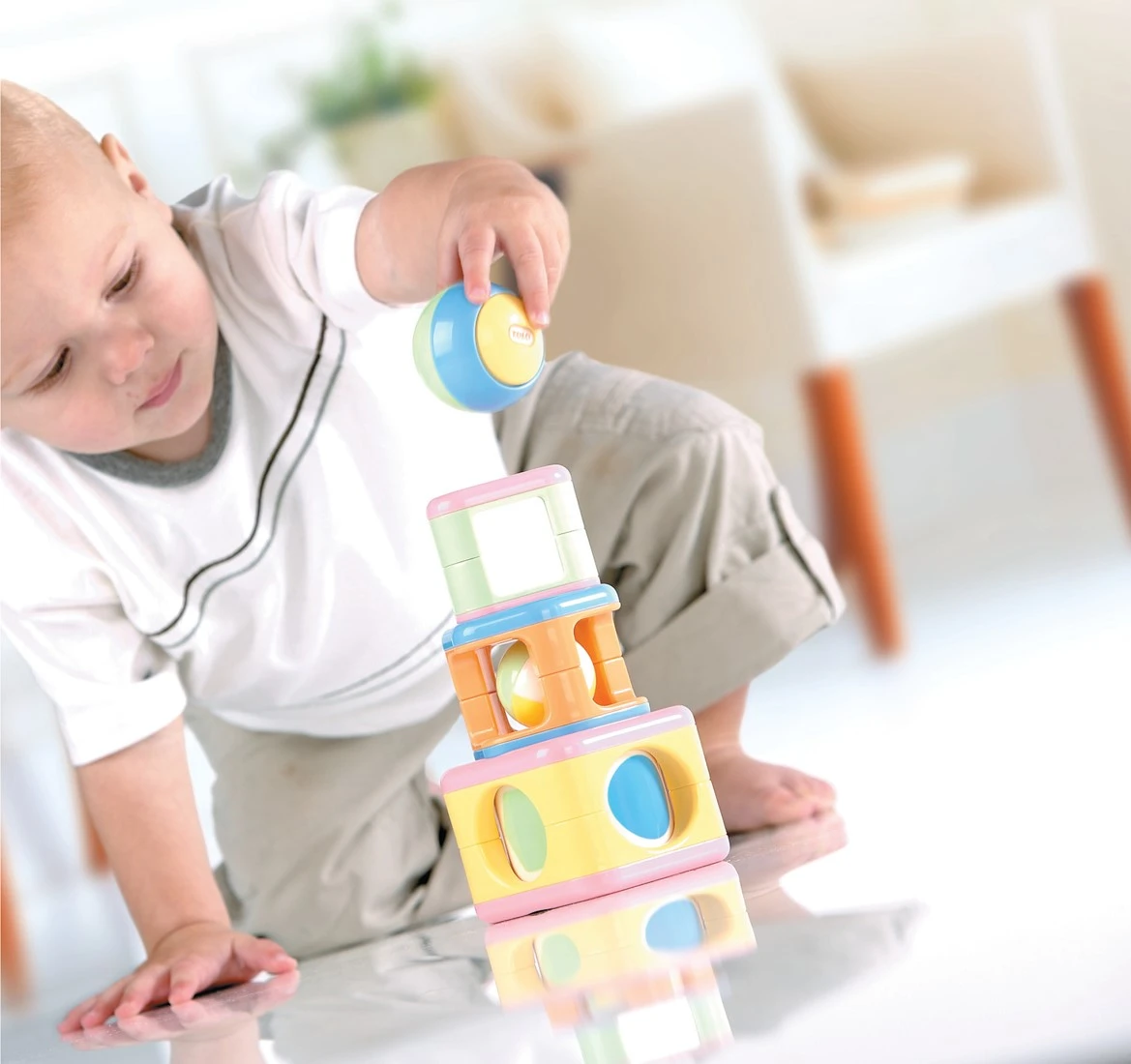 Stapelturm mit 4 Elementen, Stacking Activity Shapes, ab 6 Monaten, im Geschenkkarton, ca. 8,5 x 8,5 x 21,5 cm