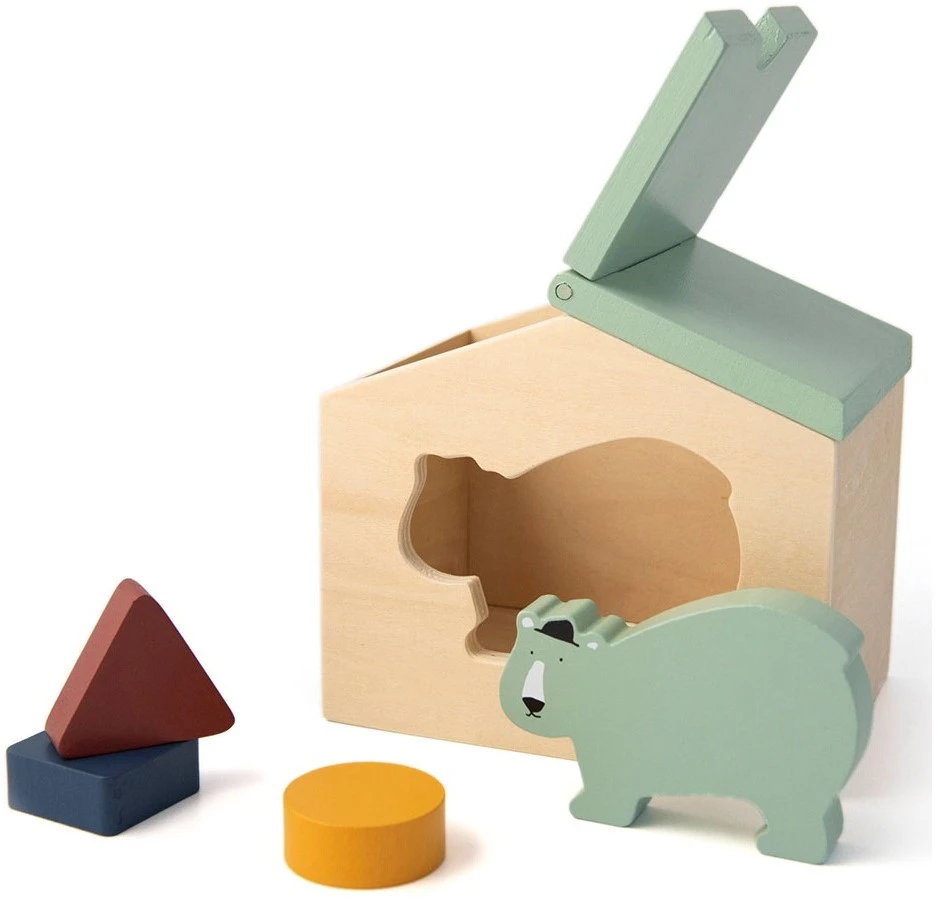 Alle tierischen Freunde winken aus ihrem kleinen Holzhaus! Jedes Haus wird mit einem Tier und 3 geometrischen Klötzen geliefert. Diese niedlichen Häuser versprechen phantasiereiches Spielvergnügen. Das Dach lässt sich öffnen und das Haus mit dem Tier oder mit den Klötzen füllen. Das ideale Spielzeug, um die Phantasie Ihres Kindes zu beflügeln.