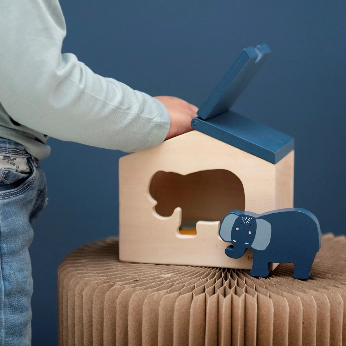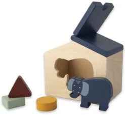 Alle tierischen Freunde winken aus ihrem kleinen Holzhaus! Jedes Haus wird mit einem Tier und 3 geometrischen Klötzen geliefert. Diese niedlichen Häuser versprechen phantasiereiches Spielvergnügen. Das Dach lässt sich öffnen und das Haus mit dem Tier oder mit den Klötzen füllen. Das ideale Spielzeug, um die Phantasie Ihres Kindes zu beflügeln.