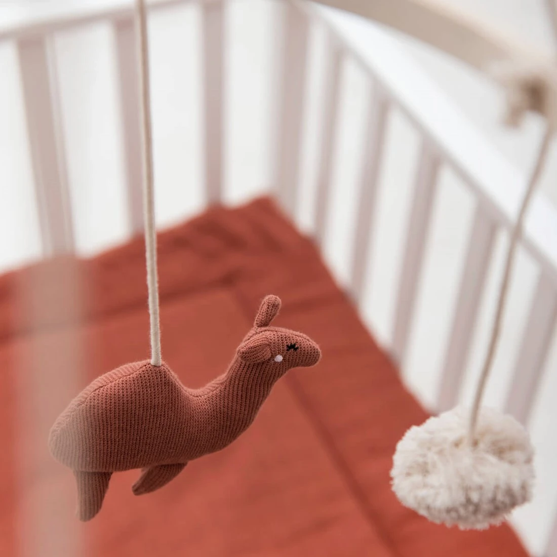 Wiegen Sie Ihr Baby mit diesem schönen Krippenmobile in den Schlaf. Es besteht aus 3 freundlichen Tieren, die über Ihr Kind wachen und dafür sorgen, dass es einen gutes Schlaf hat. Kombiniert mit fröhlichen, flauschigen Bommeln und einem hochwertigen Holzring ist dieses Mobile eine schöne Ergänzung für jedes Kinderzimmer. Es ist in 3 verschiedenen Tier- und Farbvarianten erhältlich.??