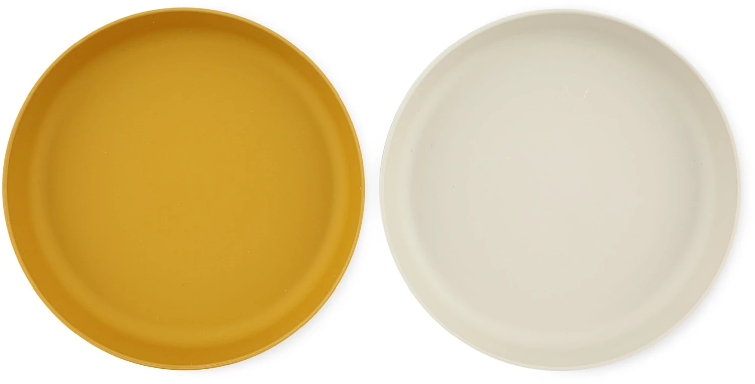 Mit diesen beiden Tellern aus pflanzlichem Kunststoff lässt sich ein gemütliches Ambiente am Tisch schaffen. Das Set besteht aus zwei verschiedenen Farben, die gut zueinander passen. Der Teller hat einen hohen Rand, um das Auslöffeln für Kinder zu erleichtern, die lernen, selbständig zu essen.