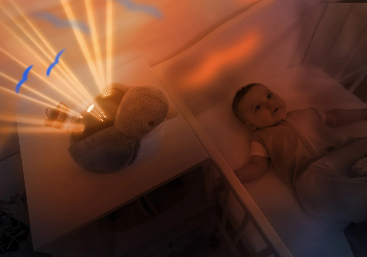 Deze projector helpt bij het in slaap laten vallen van uw kind door middel van een animatie in drie stappen. Na 30 minuten zal de projector automatisch uitgeschakeld worden.